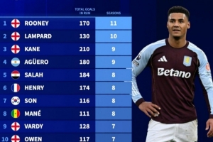 体育资讯4月20日讯 维拉前锋沃特金斯本赛季英超进球上双,这已经是他连续第6个赛季做到这一点。德转也盘点了英超历史球员连续进球上双纪录榜,具体如下(期间总进球数+连续上双赛季数):