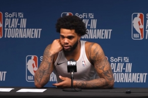 布里奇斯:“我的意思是,我们在整个过程中都团结在一起。这是一场起伏不定的比赛,但这正是附加赛的意义所在。但在最后一个回合,我看到米切尔低着头,我知道他不会传球了,所以我就过去把那个球封盖了。我们在进攻端执行得很出色,鲍尔表现得很棒,完成了上篮。然后我们在防守端也执行得到位。”